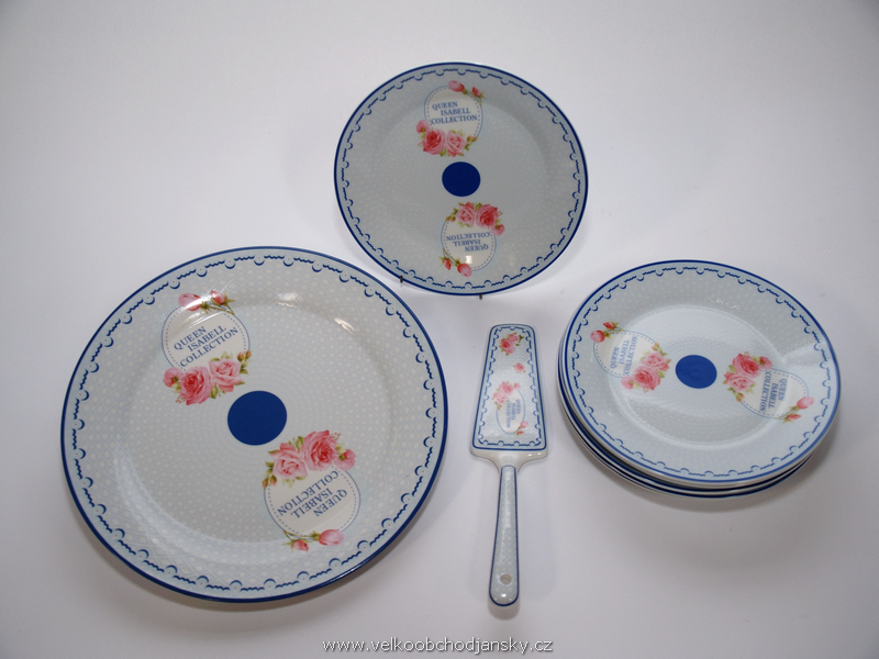 dezertní sada 6 + 1 + lopatka světle modrá ROSE