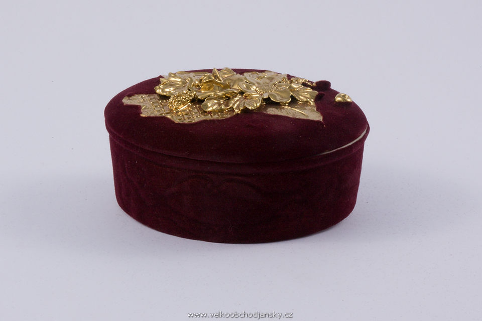dóza 13 x 10 x 6 cm BORDÓ samet + ruční zlaté zdobení